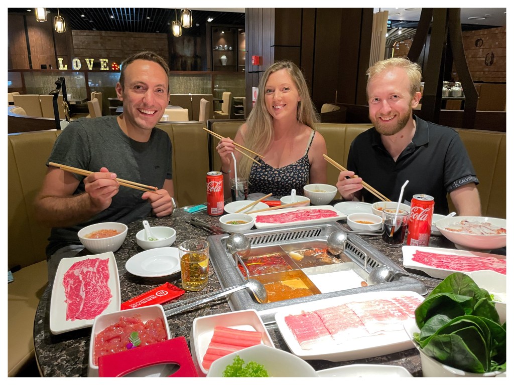 It won’t come as a surprise to you that Singapore has plenty of delicious culinary options. We tried hot pot for the first time here at Haidilao. Here you choose four broths along with various raw ingredients (e.g. meats, seafood, noodles, veggies), which you then cook yourself in one of the boiling broths in the centre of the table.