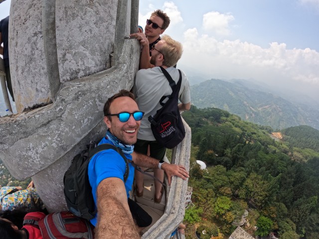 Today we were all heading to Gampola. Located in Gampola, Kandy, lies a biodiversity complex and multi-religious hilltop place of worship with a very unusual tower: Ambuluwawa Tower. The tower itself is located on the summit of the mountain peak and provides excellent views over Kandy and beyond. Though to climb it is not for the faint hearted.