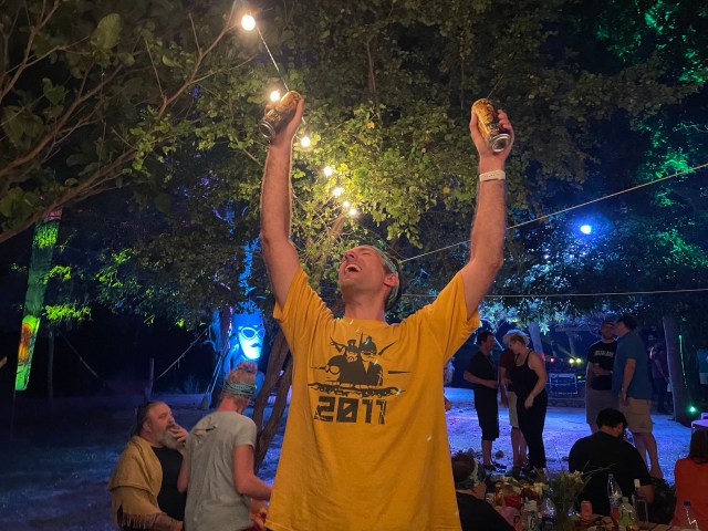 After an ice cold beer on arrival, a finish line photo shoot, and an interview – the celebrations began!