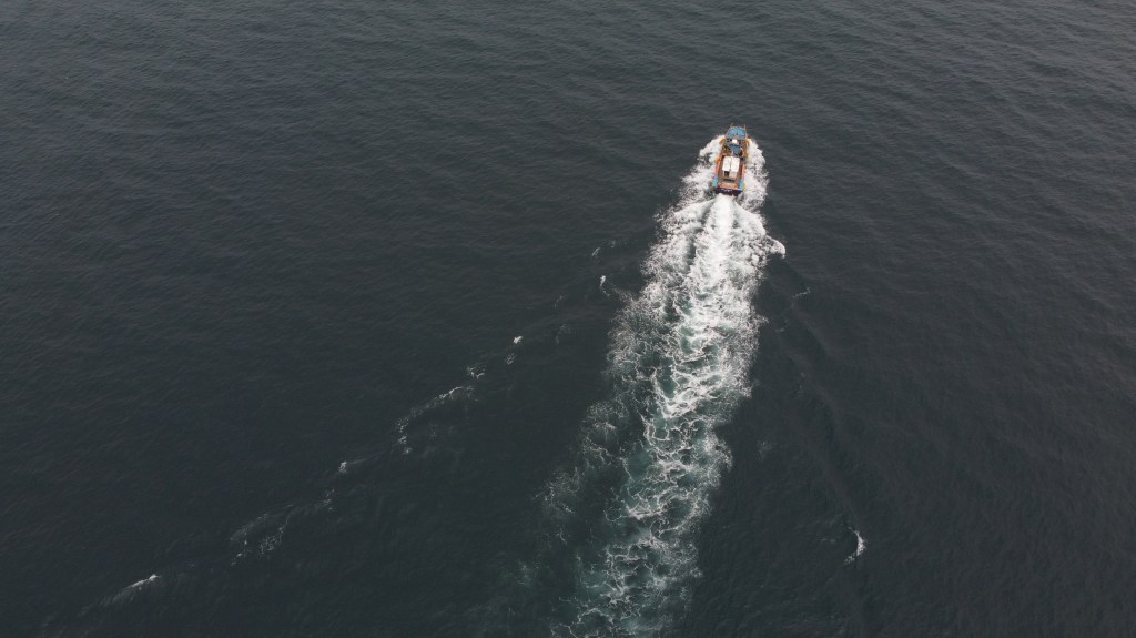 We got some lovely drone footage of some divers going out to sea in their boat.