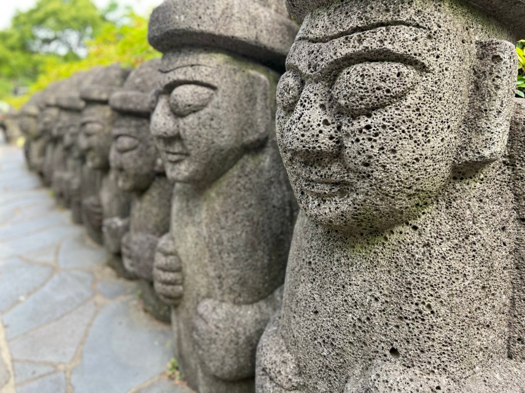 Carved from Jeju’s porous volcanic rock, the ‘Dol Hareubang’ can be seen all over the island. Believed to wade off evil spirits and demons, they are thought to serve as the guardians and protectors of the island. There is no shortage of Dol Hareubang themed souvenirs on Jeju!