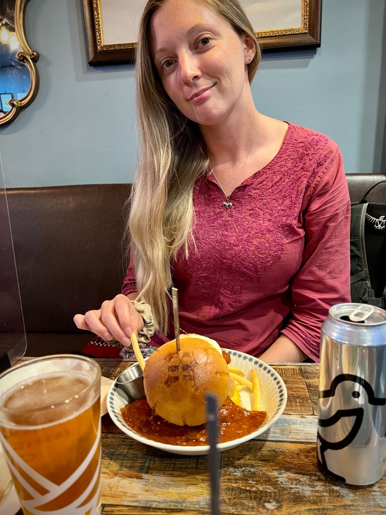 We stopped half way for a lunch break at a gorgeous pub with 7 dogs; though I think they were more interested in our food than us sadly.
