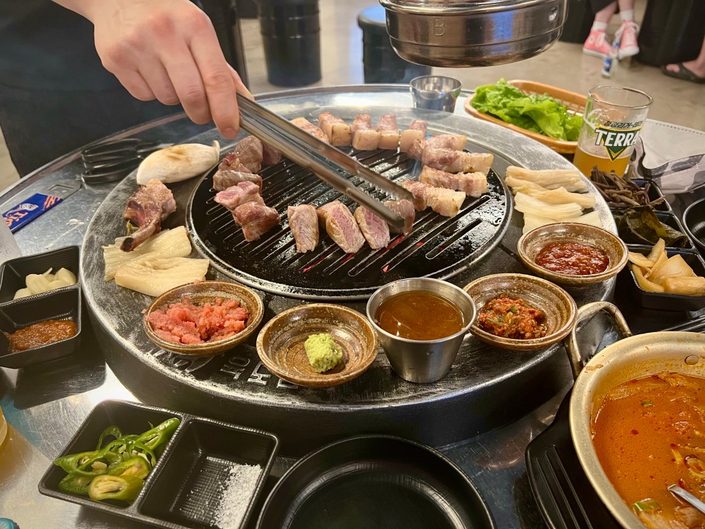 Vegetarians look away now. The Jeju Black is a Korean breed of pig. Jeju is famous for this unique tasting black pork. Known as the “wagyu” of the pork world, as it’s extra juicy and more meaty. It is a much-try dish for foodies when visiting Jeju; we ate it every single night we were there. The Korean BBQ place pictured below was especially incredible, and the staff even cooked it for us.
