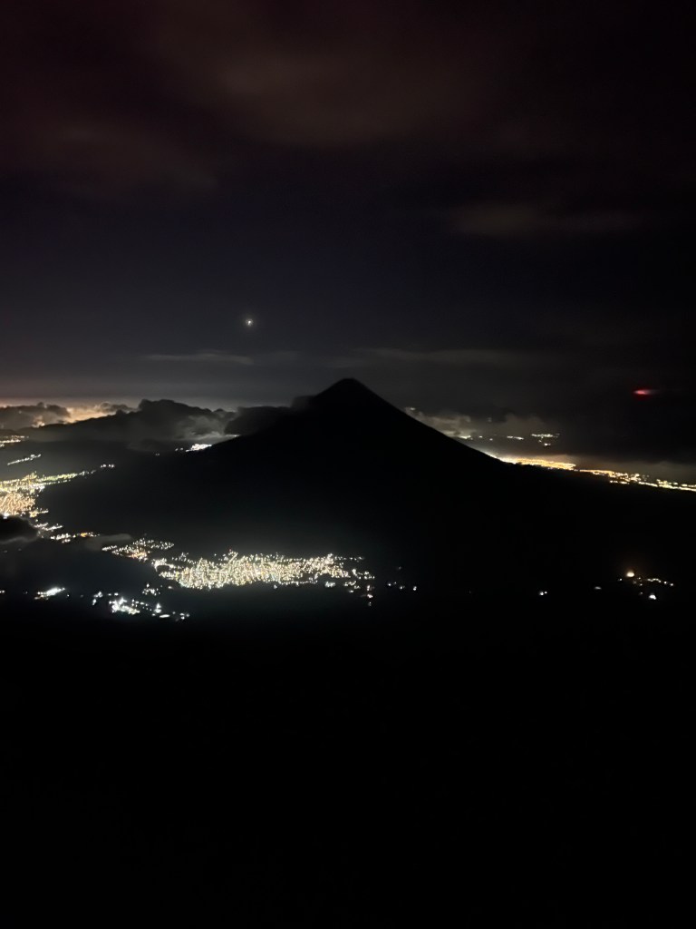 On the left of us, the view of the distant cities below and surrounding volcanos was spectacular. There was a thunderstorm in the distance, and every few seconds we saw the sky light up. It felt like we were on top of the world.