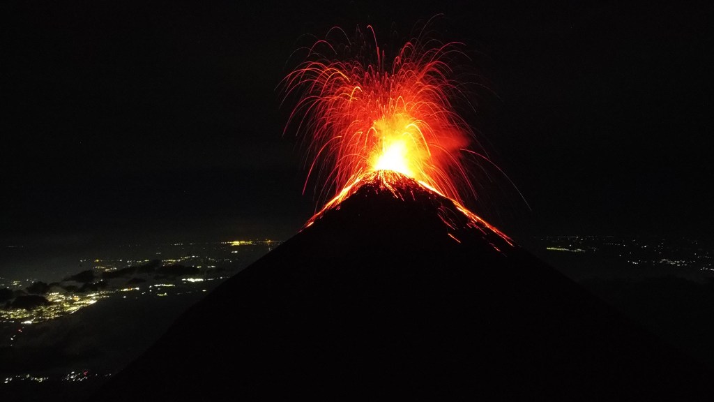 Armed with head torches, about 10 of us left base camp at 6pm and headed down Acatenango and up Fuego as the sun was setting. As the darkness set in, the lava explosions became more and more obvious to see. Watching Fuego volcano erupt over and over again was an experience like no other. Probably the most amazing thing I’ve ever laid eyes on. Every so often, we would stop for a few seconds and shout “WOWWW!” as the lava would spew violently out Fuego.