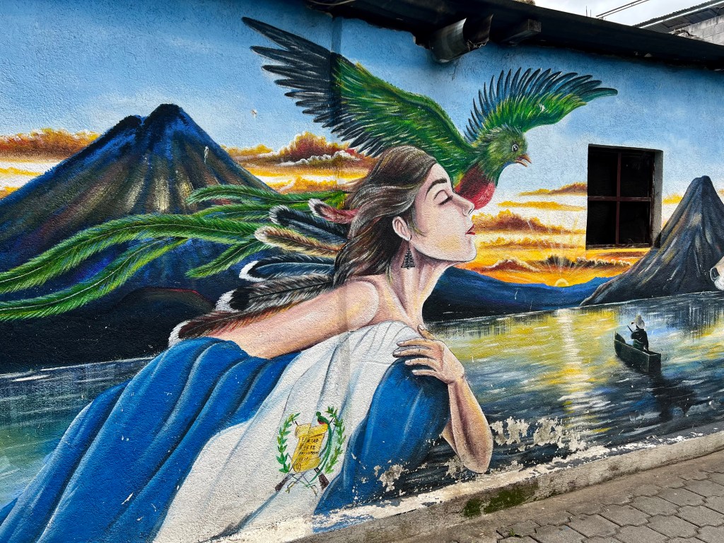 We did do some walking around San Pedro. We came across some great street art, this one picturing the green quetzal bird, which is the national bird of Guatemala.