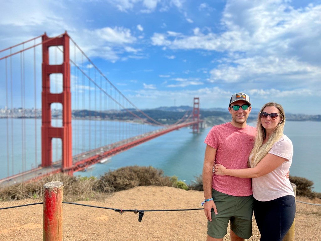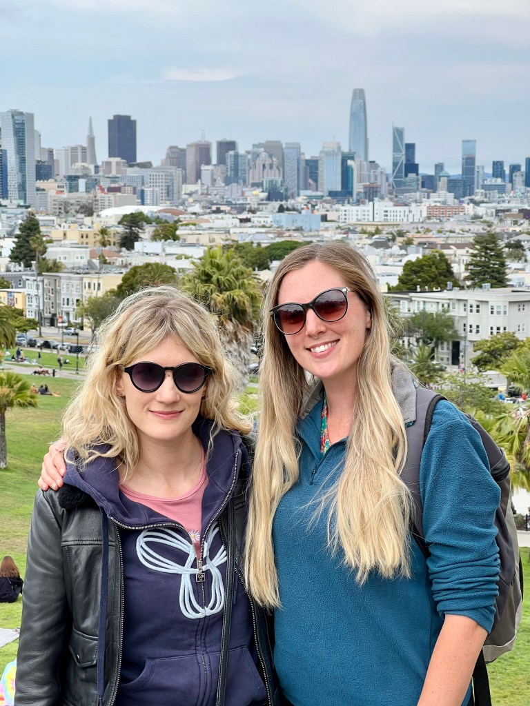 Our next stop was the foggy San Francisco. My good friend from home, Lucy, was going to be joining us on our travels for a bit. Yay! I couldn’t wait to see her. We were camping up outside the city, at a friend of a friend’s. It was the morning of England Women winning the Euro 2022 final so Leon made us a little late for meeting Lucy at her hotel in the city. He won some money on the match so offered to pay for the Uber there to speed things up!