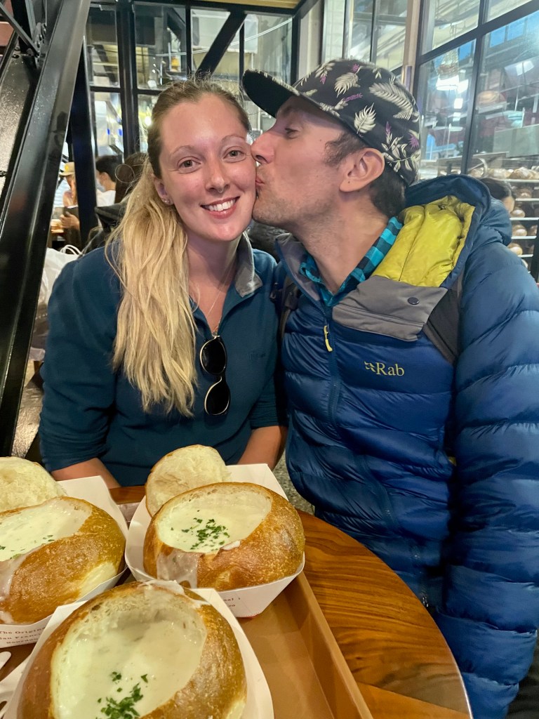 San Fran is famous for a number of dishes; clam chowder is among one of the most popular. That evening we headed to Boudin Bakery in Fisherman’s Wharf to try clam chowder in their signature sourdough bread bowls. The bakery has been around since 1849, serving the people with this popular staple. The chowder was delicious; wholesome, filling, and comforting – perfect for a foggy day. A quintessential San Fran dining experience.