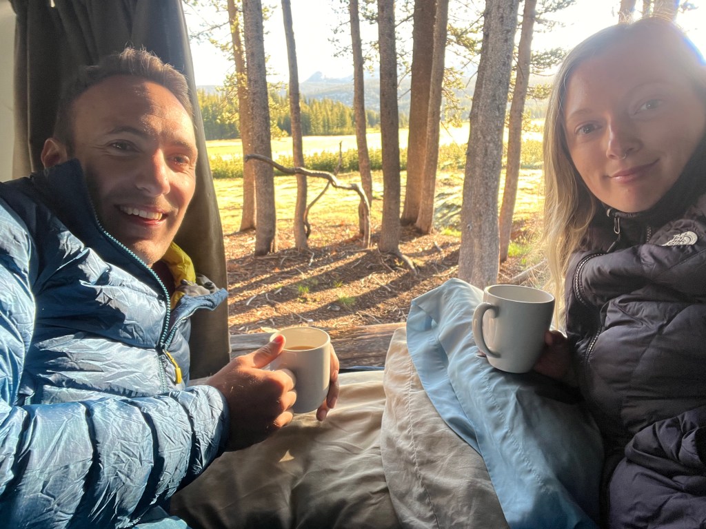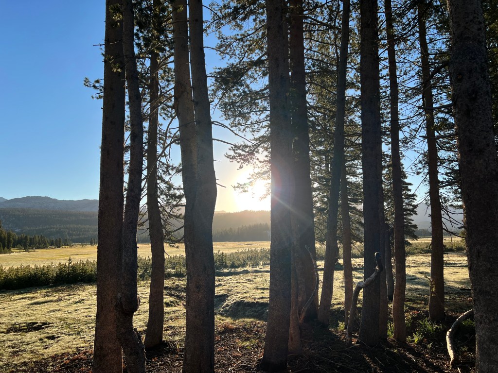 Well that was lucky, and we sighed with relief. If you are planning on visiting, we thoroughly recommend going through the dramatic Tioga Pass (the east entrance). This initial drive is absolutely breathtaking, especially at sunrise, and was a spectacular way start to our fantastic two days. We parked up next to Tuolumne Meadows; at an elevation of 8,600 ft, it is one of the largest high elevation meadows in the Sierra Nevadas. We had a nap before making a cup of tea and watching the sunrise and deer roaming past. The smell of fresh pine was amazing.